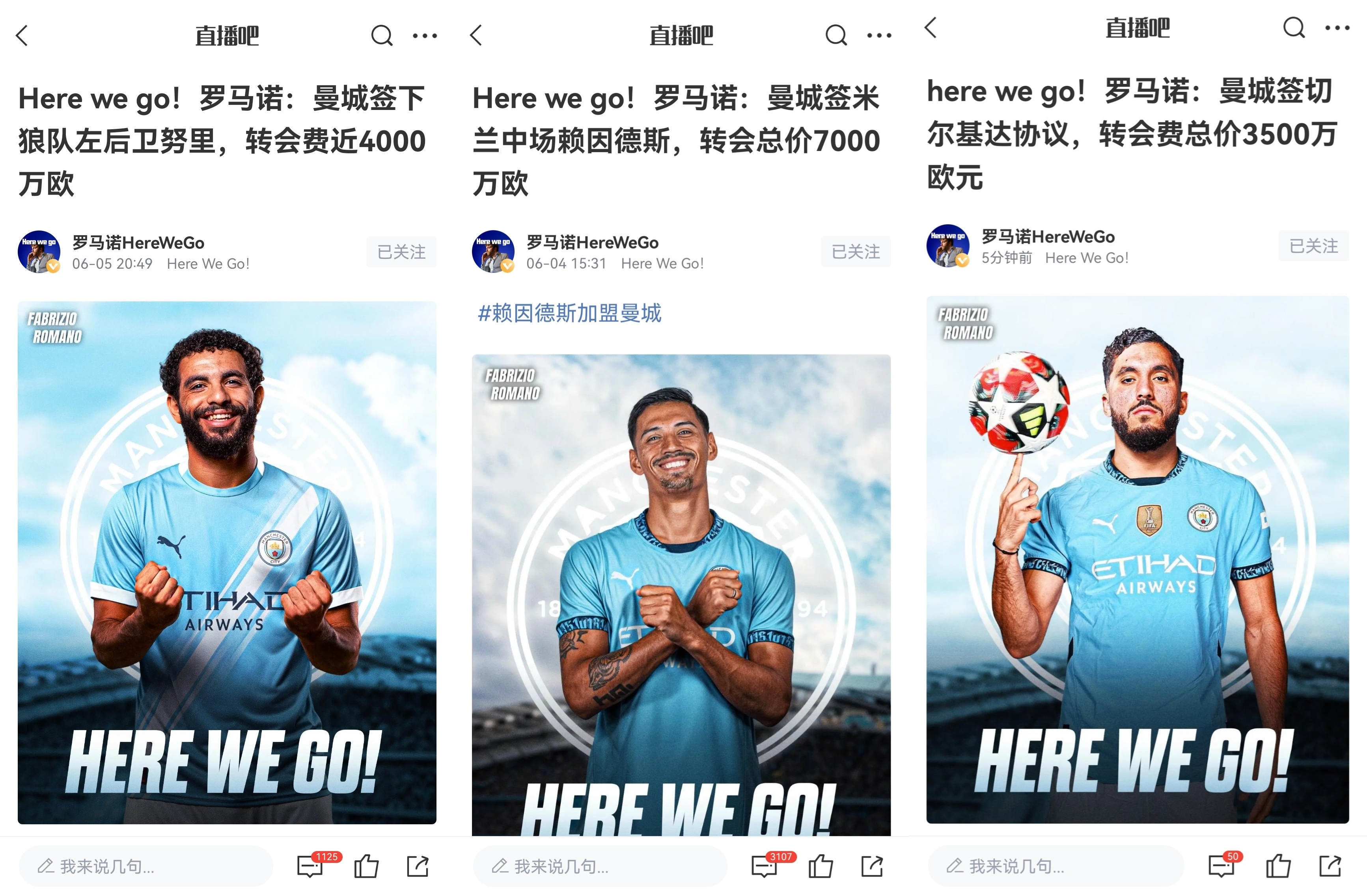 此前曼城已经敲定了赖因德斯和努里,这两笔转会只差官宣,前者的转会费总价7000万欧元,后者4000万欧元。