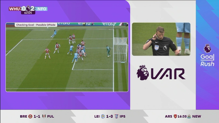 米伦科维奇头球破门 VAR经6分钟回看确认进球有效,森林2-0西汉姆
