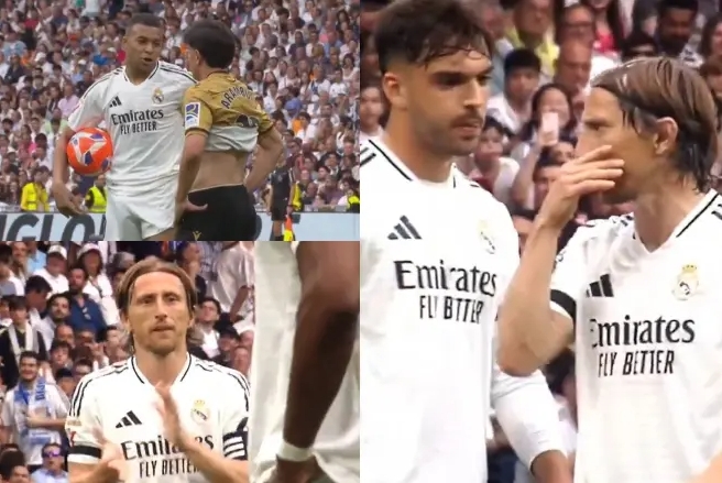 在姆巴佩罚点之前,伯纳乌球场有观众喊莫德里奇名字,让莫德里奇罚。皇马后卫阿森西奥在罚点前也与莫德里奇交流,随后莫德里奇捂着嘴说了几句话。马卡报表示,莫德里奇可能说的是让姆巴佩去罚点球。